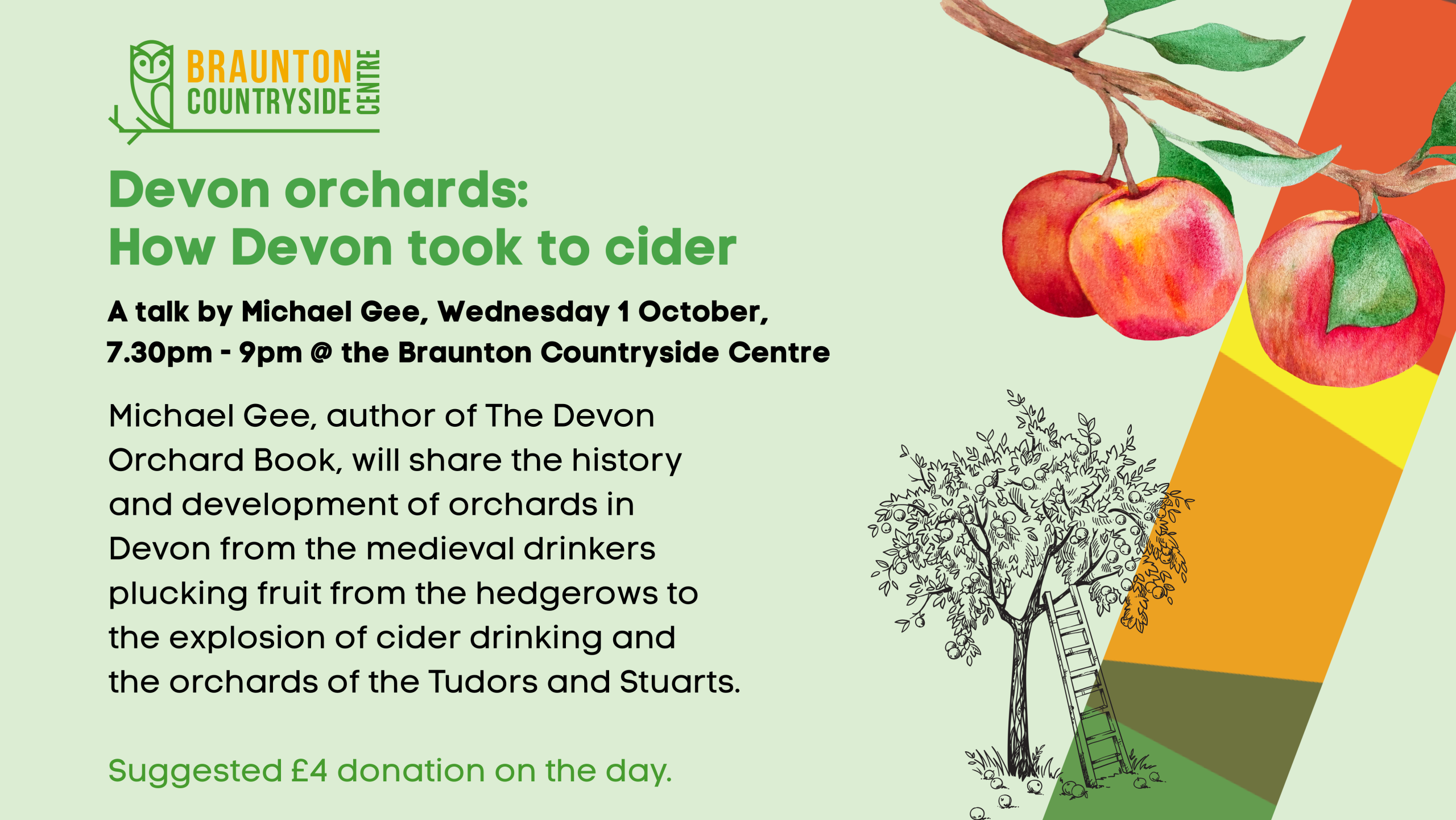 This promises to be a fascinating talk by Michael Gee, author of The Devon Orchard Book, about the history and development of orchards in Devon from the medieval drinkers plucking fruit from the hedgerows to the explosion of cider drinking and the orchards of the Tudors and Stuarts. After two centuries of decline, there is now a promising revival in establishing new orchards and preserving the tradition of growing and harvesting favoured varieties of fruit.
